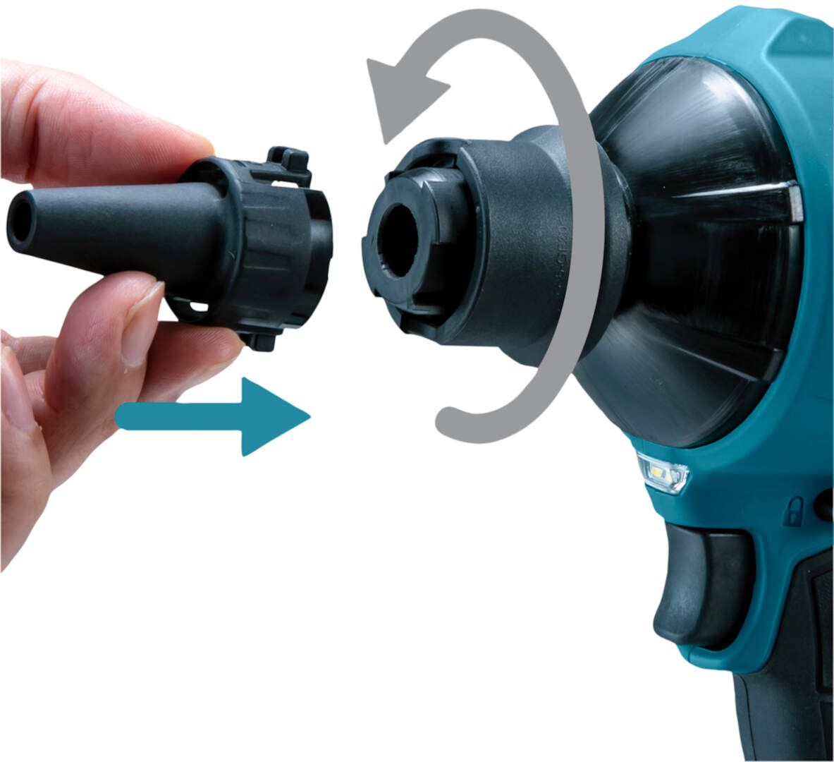 Postavljanjem creva za vazduh i odgovarajuće mlaznice moguće je jednostavno izduvavanje različite opreme.