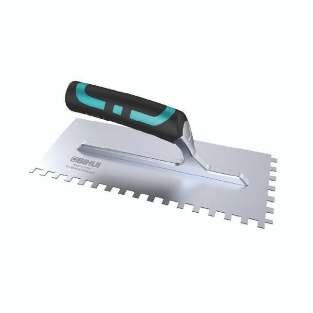 Nazubljena gleterica BIHUI PTSB sastoji se od ergonomske ne-klizajuće drške i lopatice (sečiva) od kvalitetnog nerđajučeg čelika debljine 0,7mm. Drška je pričvršćena za sečivo sa 8 zavarenih zakovica. Izdržljiva „Heavy Duty“ gleterica sadrži na sebi i izdržljivu šinu dužine 220 mm. Raspon veličina useka pogodan je za svaki posao. Dolazi sa tri različite veličine zuba – 8, 10 i 12 mm. Ukupna veličina je 280×120 mm.