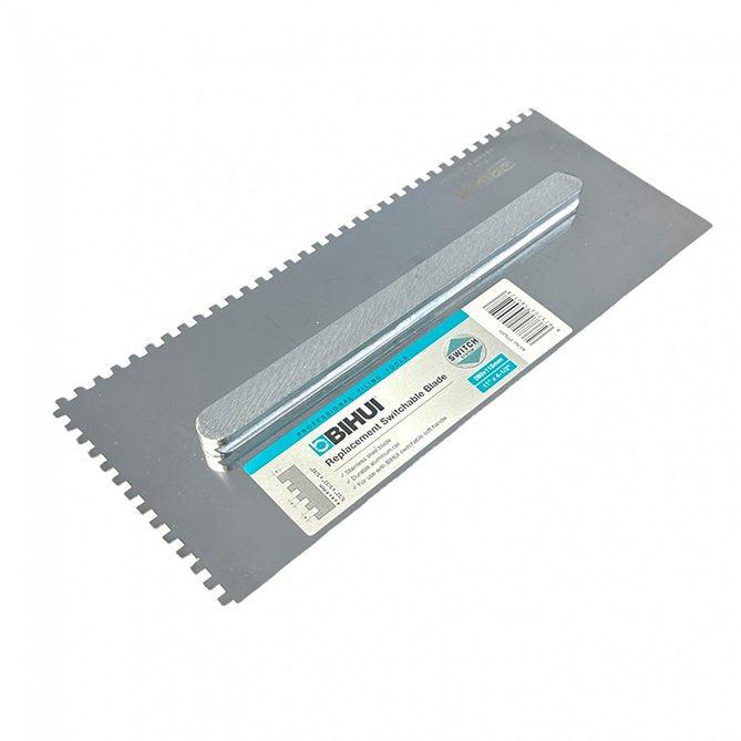Rezervno sečivo BIHUI PTSJ04, za set nazubljenih gleterica (BIHUI PTSJG8), najvišeg je kvaliteta. Napravljen je od nerđajućeg čelika debljine 0,7mm. Poseduje široki aluminijumski učvršćivač. Savršeno glatko i izdržljivo sečivo BIHUI Combi dimenzija 280×115 mm. Sadrži zube kvadratnog oblika (zareza) dimenzije 4×4 mm.