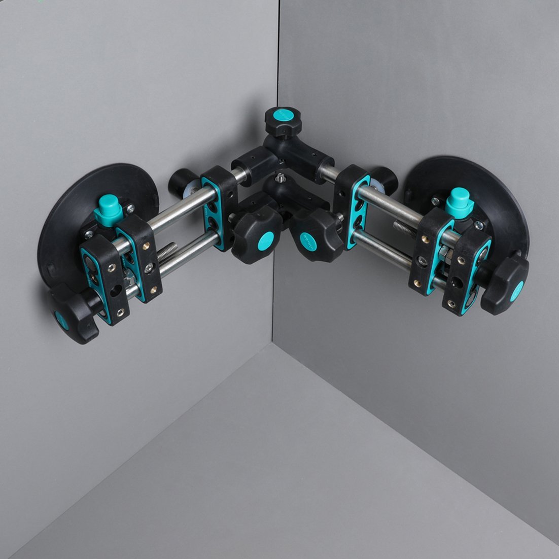 Profesionalni ugaoni vakumski regulator pločica – BIHUI LFTFV6 koristi se za poravnanje (od 90° i 180° i 270°) i podešavanje razmaka pločica. Poseduje dva dugmeta za podešavanje nivoa pločica. Sadrži dve vakumske usisne čaše od 6 inča. Lagane i izdržljive strukture idealan je za velike porcelanske ili kamene pločice i staklo.